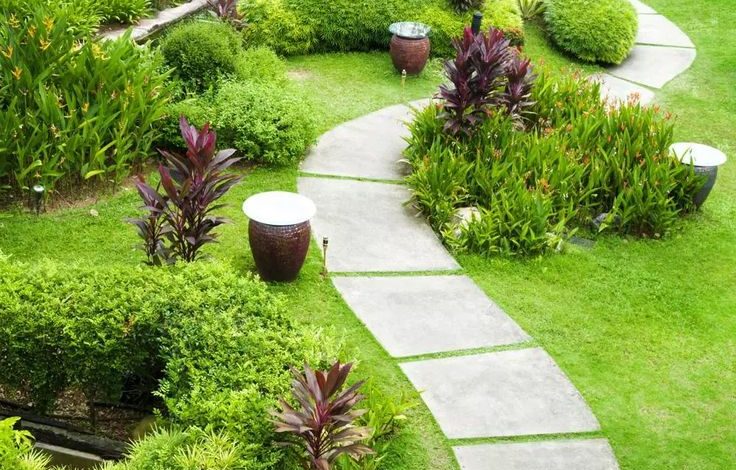 Кроме цветов, можно использовать растения с разнообразными листьями и текстурами. Растения можно высаживать как в горшках, так и прямо в землю вдоль дорожек, создавая зеленые аллеи и живописные уголки.